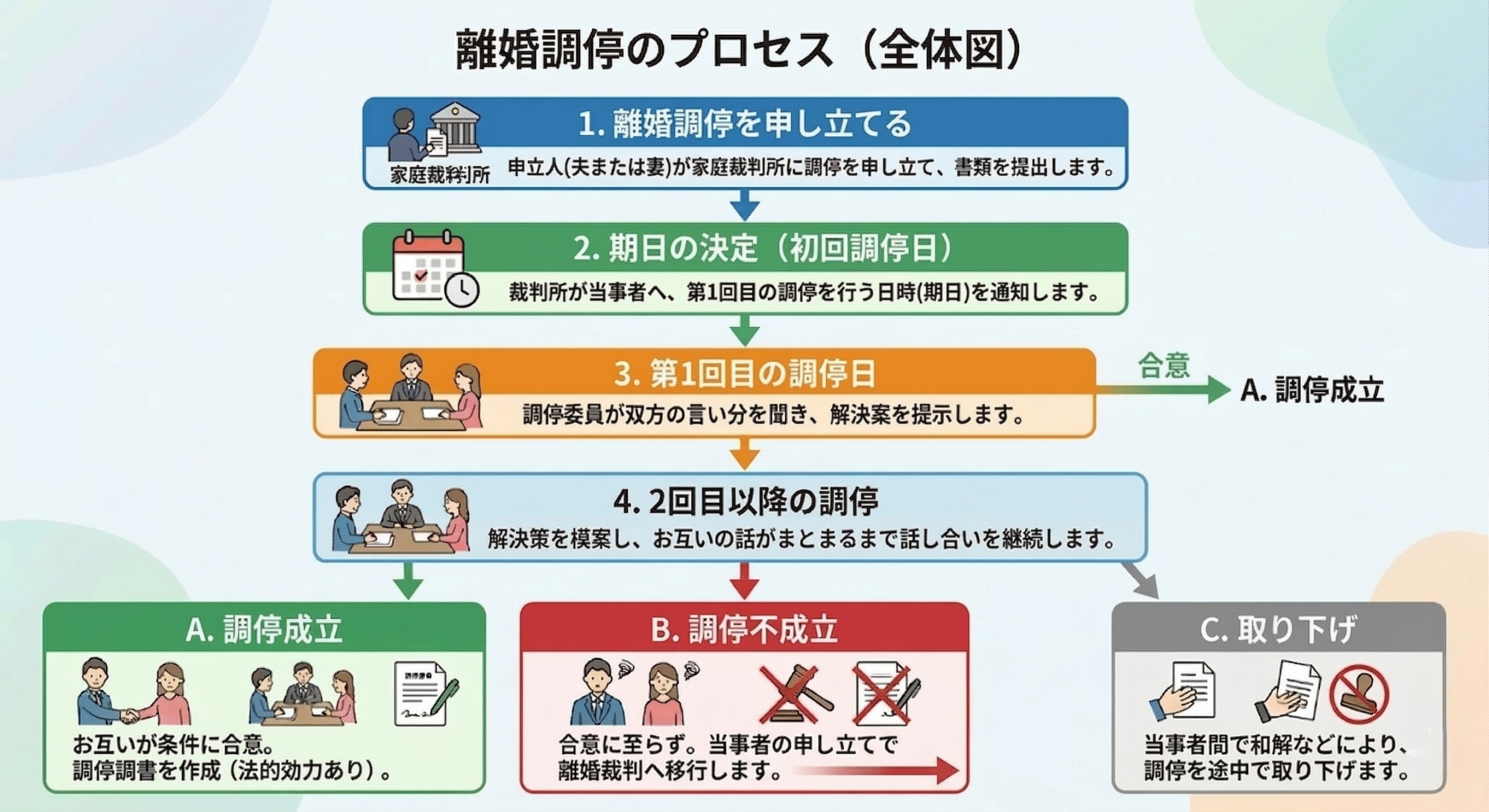 離婚調停の流れは以下のようになります。